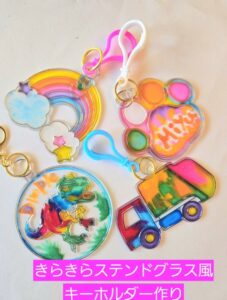 車のフロントガラスの中間膜リサイクル研究から生まれた、地球に優しいeco絵の具。ぬり絵感覚で小さなお子様から簡単にステンドグラス風のキーホルダーができあがります!楽しみながら産業廃棄物を減らすことにご協力して頂けます。