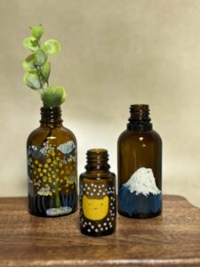 アロマテラピーで使うエッセンシャルオイルの空き瓶を捨てるという選択の前に何かに利用できないかと思いついたのが一輪挿しでした。